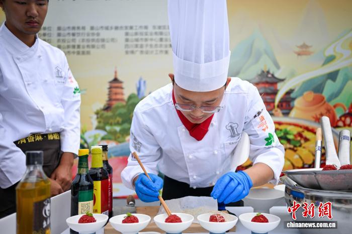 四川眉山厨艺对决点燃秋日“食”光 9月27日,一场精彩的厨艺技能大赛在四川眉山市东坡区太和公园星光湾举行。专业与业余选手同台竞技,为现场民众及游客呈现了一场兼具视觉与味觉的美食品鉴盛宴。图为参赛厨师正在紧张制作菜品“荔枝虾球”。中新社记 09-28