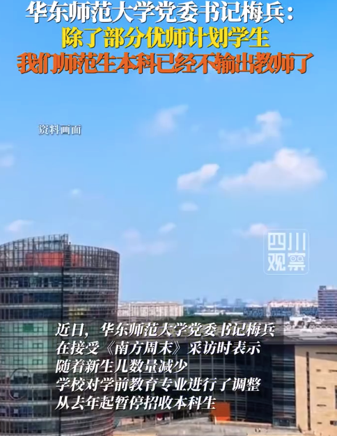 华师大回应师范本科不再输出教师:除部分面向中西部的优师计划外 培养重心提升到研究生阶段 近日,华东师范大学党委书记梅兵在接受《南方周末》采访时表示,随着新生儿数量减少,学校对学前教育专业进行了调整,从去年起暂停招收本科生。这是因为国内不少高校能够满足承担本科层次的学前教育师资培养任务,我们则将资源更多集中到更高层次的人才培养,... 03-11