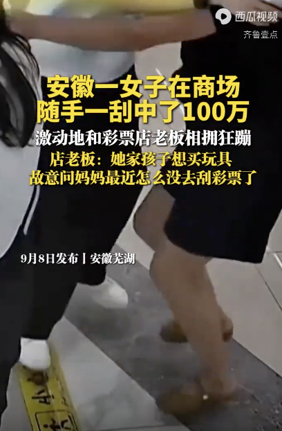 彩票店老板回应女子随手一刮中100万! 彩票店老板回应女子随手一刮中100万。9月8日发布,安徽芜湖。一女子在商场随手一刮中了100万,激动地和彩票店老板相拥狂蹦,店老板:她家孩子想买玩具,故意问妈妈最近怎么没去刮彩票了。彩票店老板回应女子随手一刮中100万彩票店老板回应女子随手... 09-08