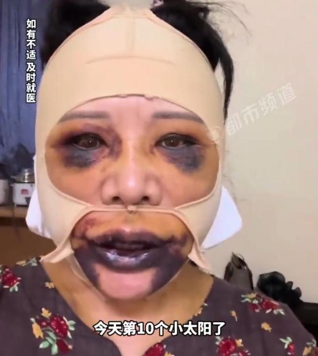 58岁女子整容后肿成熊猫 追求美丽需谨慎 据河南广播电视台都市频道报道,上海一名58岁女子分享了自己整容10天后的面部情况。视频中,她面部仍有大片淤血,眼睛和嘴巴肿胀发紫。她自嘲像“熊猫”,并提醒大家追求美丽需谨慎,务必三思而后行 09-18