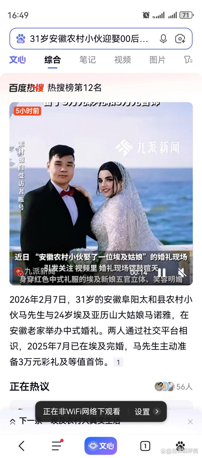 31岁小伙迎娶24岁埃及女生 跨国情缘喜结连理 安徽31岁小伙迎娶00后埃及姑娘,跨国情缘喜结连理。2026年2月7日,这场中式婚礼在安徽阜阳太和县举行,吸引了众多关注。31岁的当地小伙马先生与24岁的埃及姑娘马诺雅按照家乡习俗完婚,这段跨越国界的爱情引发了网友的热议 02-13
