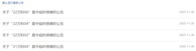 万科债大跌引发市场关注 今日早盘,万科债普遍下跌,“21万科04”跌超20%盘中临停,“21万科06”和“23万科01”跌超12%,“21万科02”跌超7%。万科境内债“22万科02”跌幅达到20%,临时停牌 11-26