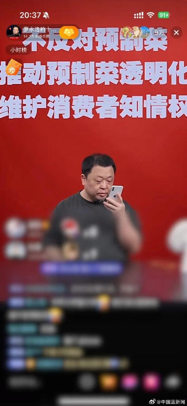 罗永浩直播谈西贝事件:支持者超90% 预制菜透明化成焦点 9月12日晚,罗永浩在社交媒体上直播讨论了西贝事件。背景大屏上写着“不反对预制菜 推动预制菜透明化 维护消费者知情权”。罗永浩表示,目前预制菜还没有正式的国家标准,他并不反对预制菜本身,而是反对将预制菜伪装成现做的菜品销售 09-15